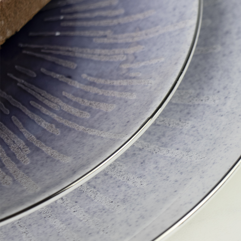 Michelin Restaurant Geschirr Bone China Sky Light Blue Speiseteller Goldrand Spot Geschirr für Hotel