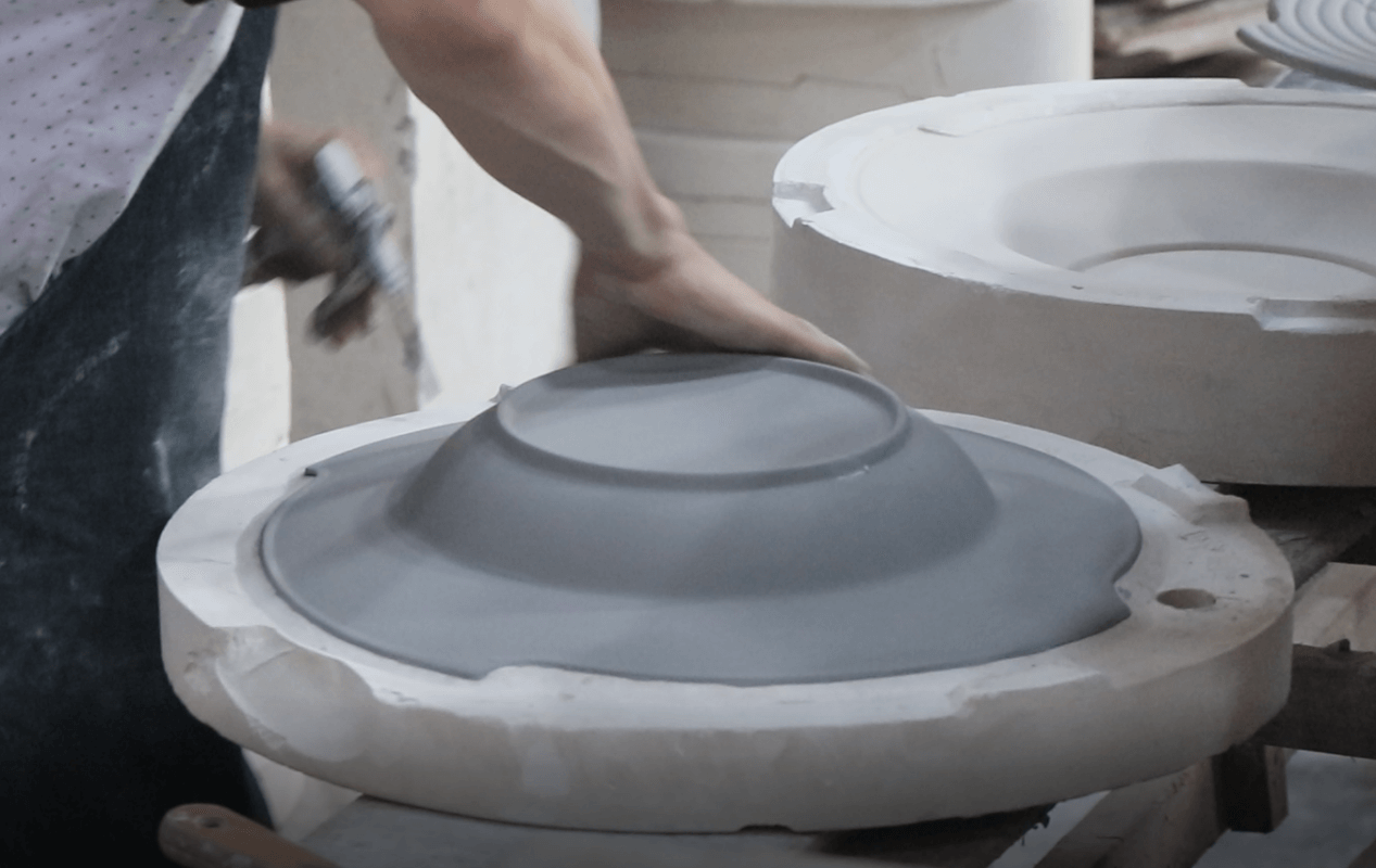 2.Rolling (Verfugen) Formen: Dieser Schritt ist der Prozess der Herstellung von Embryonen.Kreisförmige, regelmäßige Produkte wie runde, flache Coupé-Teller und -Schalen werden durch Rollformen hergestellt.Heterogene oder unregelmäßige Produkte werden durch Spritzgießen hergestellt, wie z. B. Teekannen, Becher und Tassen usw. Das Rolling-Formen erfolgt mechanisch, während das Verfugen durch manuelles Verfahren oder durch eine Verfugungsmaschine geformt wird.
